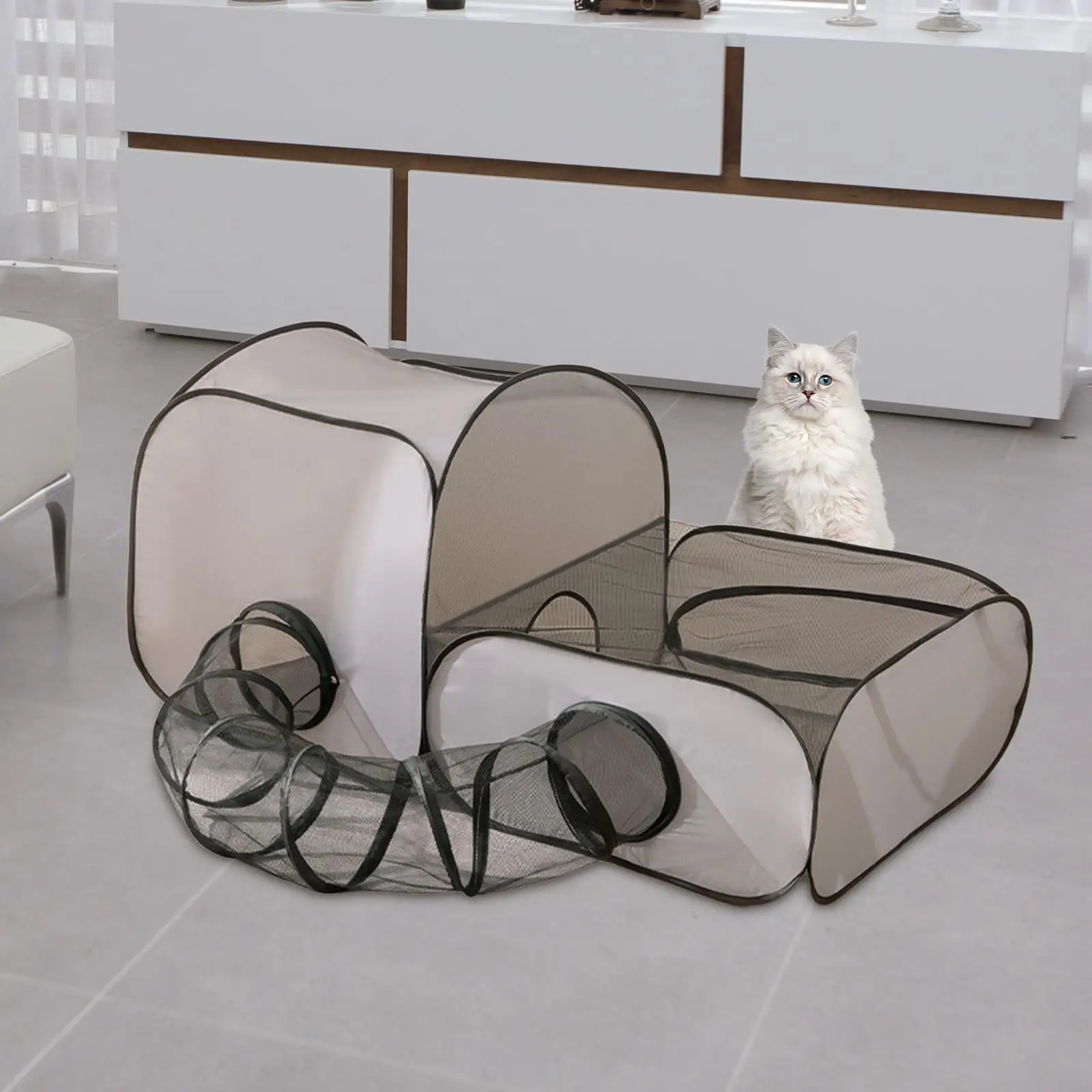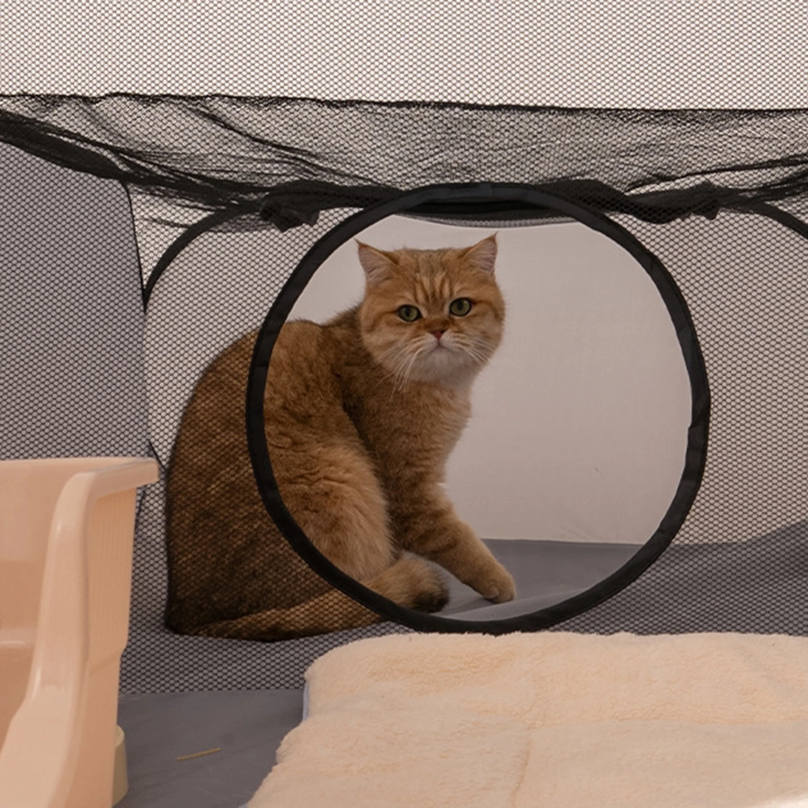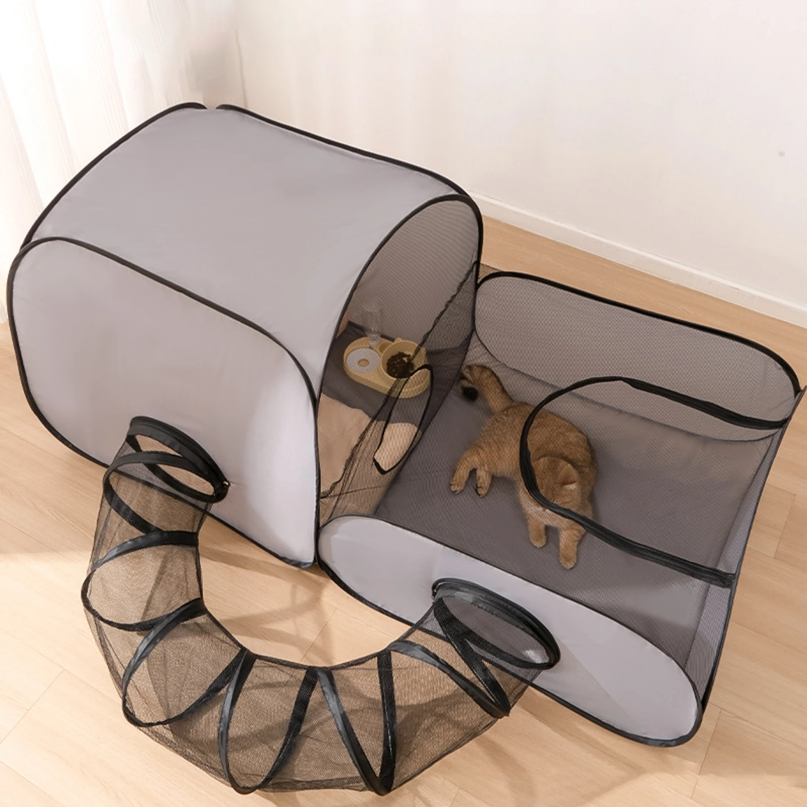 【Easy to Clean and Maintain】: Made from dirt resistant and scratch resistant materials like polyester fiber net and oxford cloth, the play tent tunnel can be easily detached for cleaning, ensuring a hygienic environment for your pets at all times